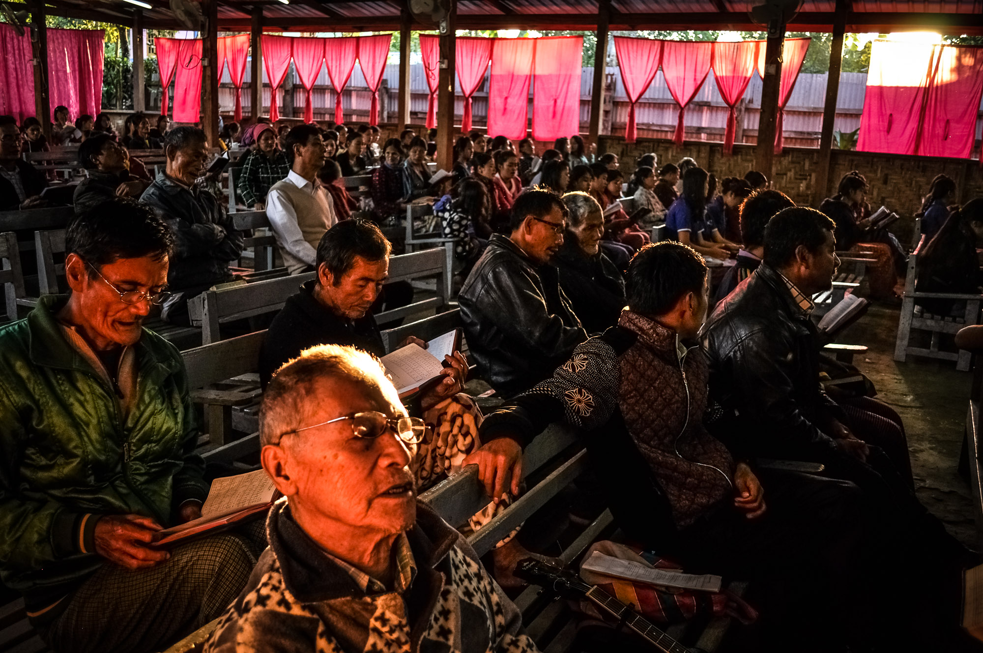 Over dinner we learned that the church functions as an education and recreation center for Bamendi. Every day, kids come to study the Lisu written language, others chase each other across open fields while young boys play football with a wicker ball made out of dried bamboo. We watched this scene unfold until the sunshine hid its last golden rays behind the mountains. We rose early the next day to attend mass with our hosts. At 3pm, it was time to get back on the road and head north to Putao.