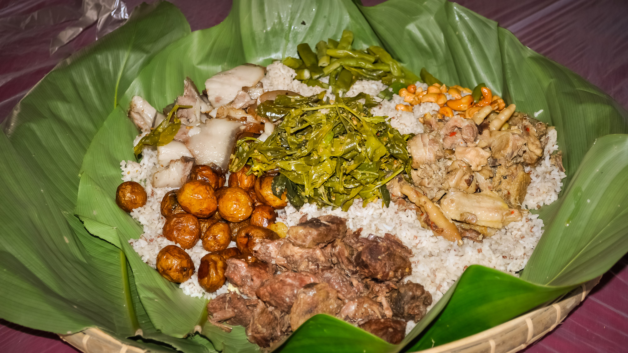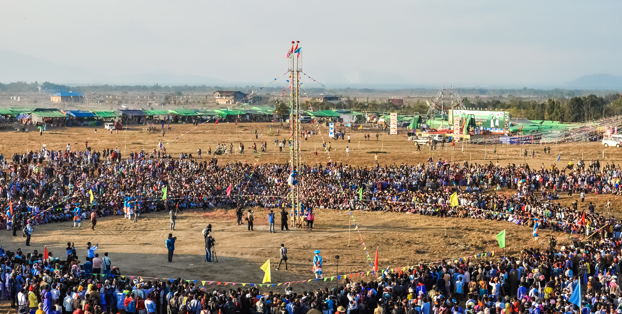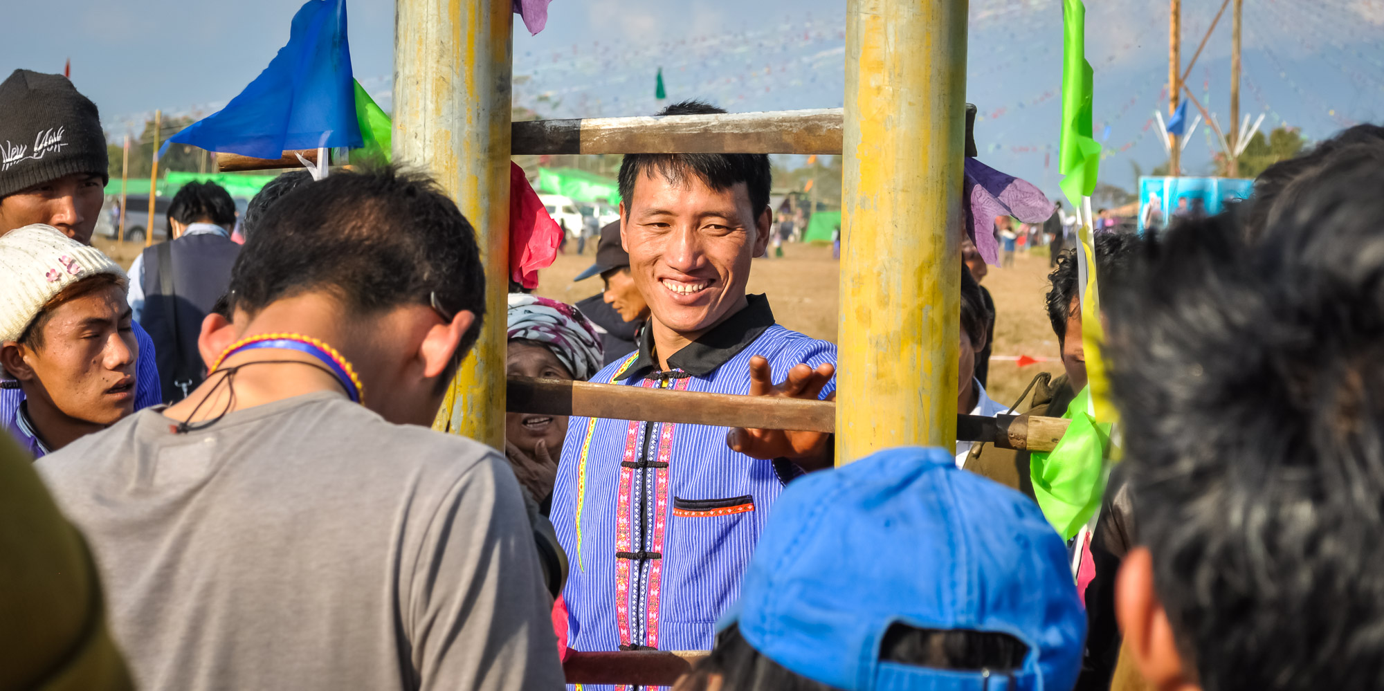 In Putao, the space reserved for Kuoshi Festival sat outside of town next to the single runway of the local airfield. Preparations for the event had been intense and costly for the people of this impoverished area. Over the course of two months, villagers made 38 temporary bamboo buildings around the festival ground to house at least some of their expected visitors. They also created reception halls, a public canteen, conference rooms and a dedicated prayer space.
