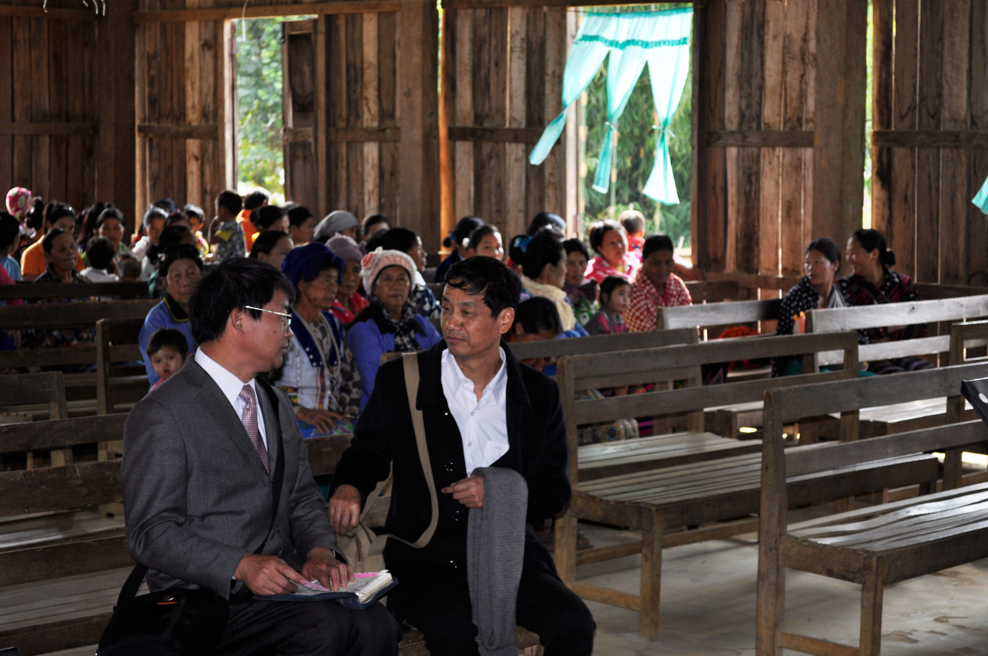 Exhausted but elated after the festival, our group set out once again, this time to visit other Lisu villages tucked away in the hills surrounding Putao. Wherever we went, all of the villagers, young and old, gathered at the local church to meet us. We gave them updates from the Nujiang Valley back in China. We also handed out quilts, clothing and candy, as well as money to help support their churches and assist poor parishioners.