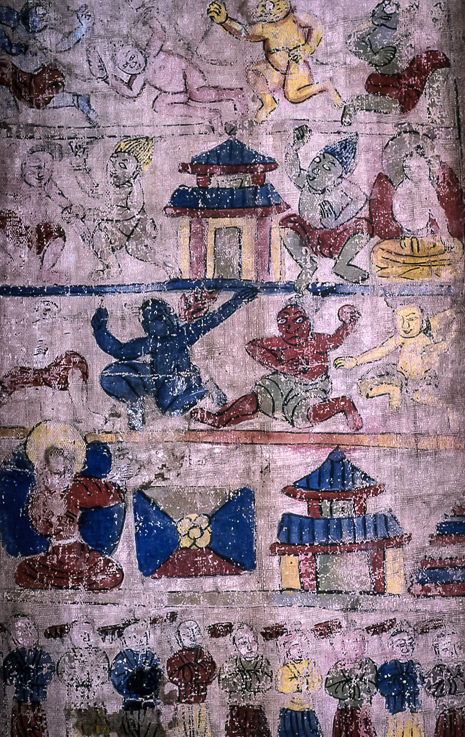 So too were rites for suicides, who were nearly always young couples whose parents had forbidden a marriage. Funerals were other important events, the most spectacular being those of a dongba himself. The highlight of a Dongba religious funeral was the display of a painted scroll twenty meters long and a recitation of a text explaining each of the illustrations at length.