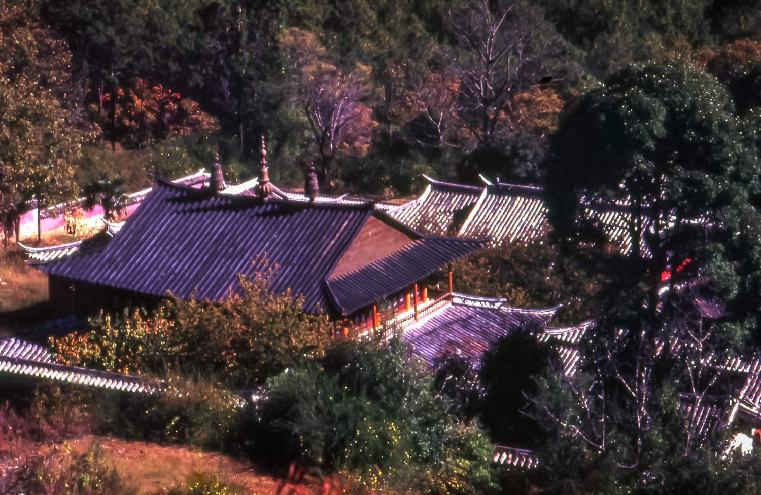 None of Lijiang's lamaseries regained their former popularity. In the 1990s, Zhiyun Temple was still used as a school. Lay caretakers looked after Puji Temple and two septuagenarian monks lived at Wenfeng monastery. Only Yufeng Temple had been able to recruit any new novices. About twenty were living there when I conducted my research. That small number doesn't compare to the hundreds in residence before 1949. The new mood of official tolerance meant monks could preach again and a Tibetan huofo — or reincarnated lama of the Yellow Hat order — set up in Dayan to instruct Naxi in Tibetan-style Buddhism. But after two years of scant success, he departed.