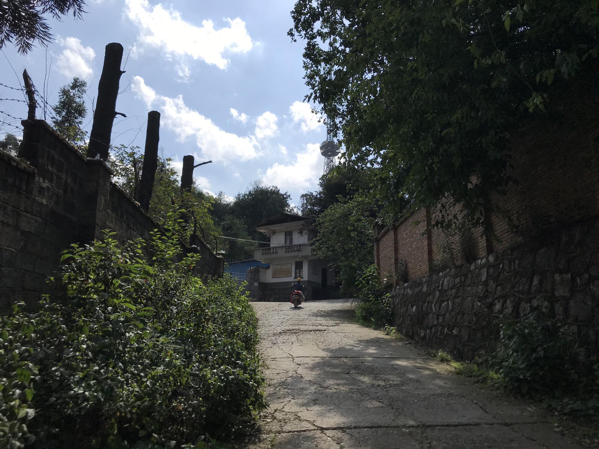 Our ascent ended with a final suspiciously suspicious guard manning the gate of the Yunnan Provincial Broadcasting Academy (云南省广播电视学校). Barbed wire and glass shards topping the brick walls hinted that this guard would not let us pass. As we stood below the gate contemplating our next move, an unopened box of perfume caught our eyes. From there, our attention was quickly redirected to a flash of neon speeding up towards the gate. The Lady in Pink dismounted her scooter and was let into the complex.