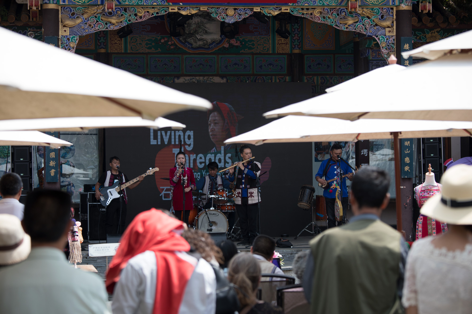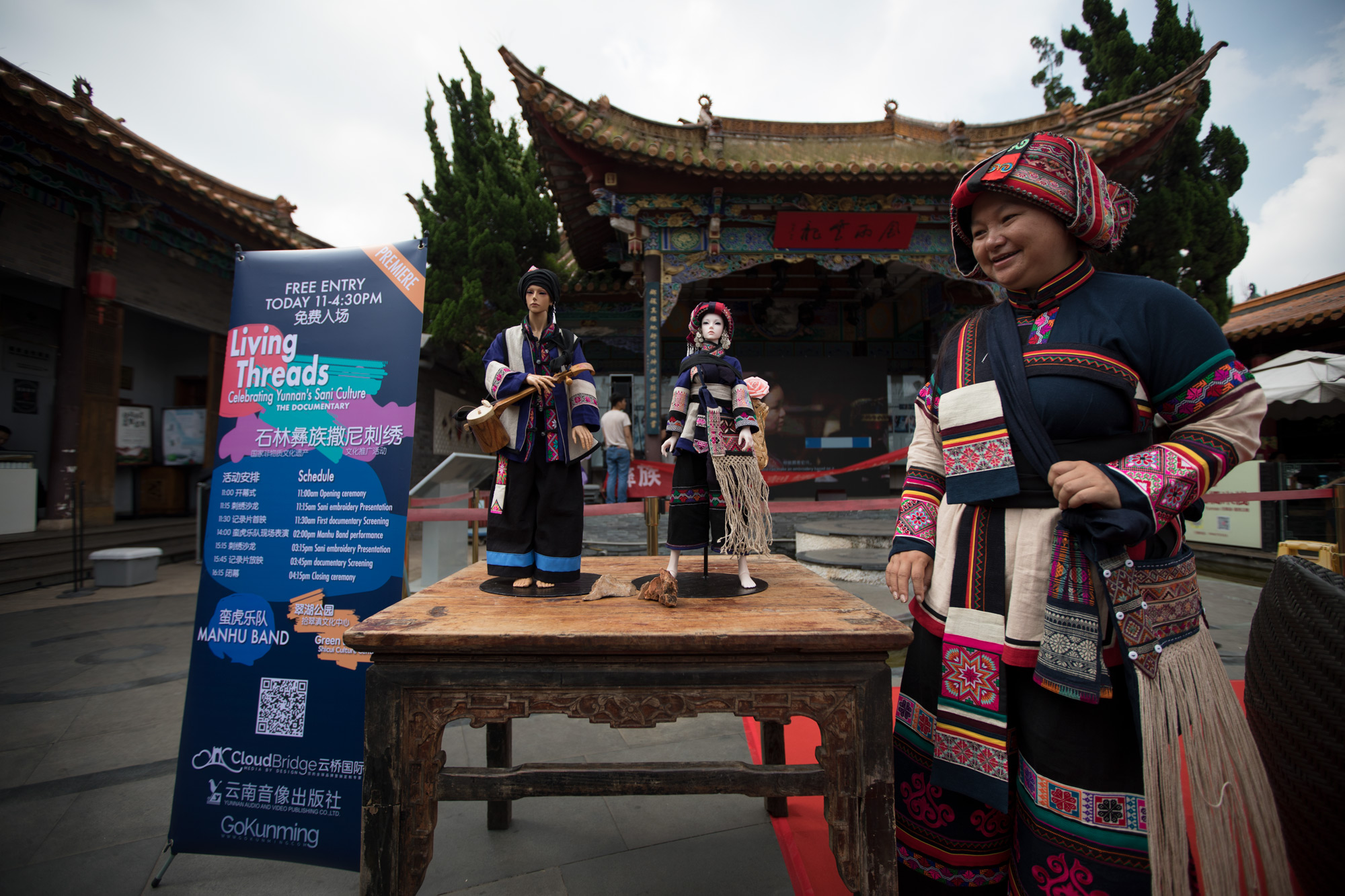 The documentary Living Threads: Revitalizing Indigenous Embroidery in Rural China premiered, and GoKunming's parent company, CloudBridge — Media by Design, celebrated the occasion with live music, interesting lectures by Sani cultural heritage representatives, a photography exhibition and displays of original Sani embroidery pieces. The band Manhu (蛮虎) also played a raucous afternoon concert. In short, it was a program that had something to offer for anyone who happened to come by.