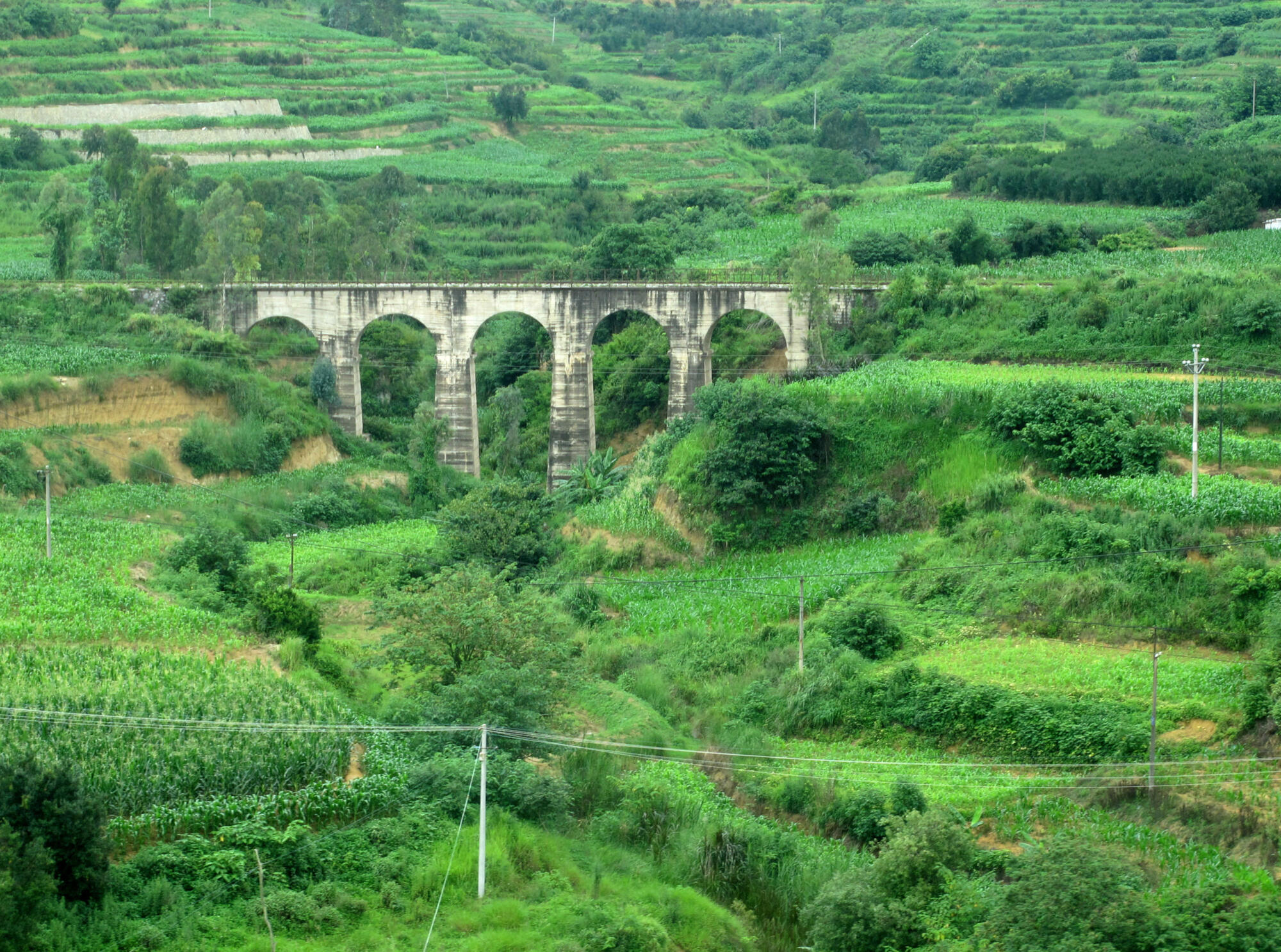 The French had chosen Mengzi because it sits midway between Kunming and the international border. With a consulate established, French engineers bent to the work of building the railroad that would connect Kunming — then called Yunnanfu — to Haiphong. The Chinese section of this venture consisted of a 464-kilometer narrow gauge route rising from the border town of Hekou (河口) — sitting at 78 meters above sea level — to the capital, which is perched much higher at 1,900 meters. The project required 107 viaducts and 155 tunnels. It was and remains an engineering marvel of Sino-French cooperation.