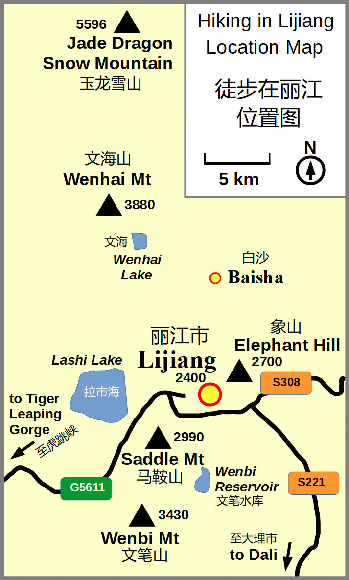 see his two-part article on circumambulating Haba Snow Mountain, as well as his explanation of where and how to hike Elephant Hill just outside of Lijiang Old Town.