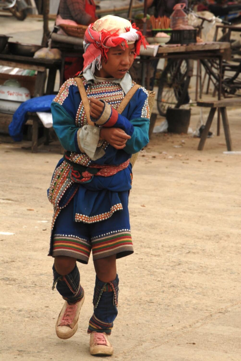 Lahu men were a small part of the crowd and did not wear anything especially traditional. Boys and young men dressed in ordinary modern clothes, while older men wore dark blue jackets and trousers. The women provided the color and to an outside observer like myself, Nanmei on market day was like an ethnic fashion parade.