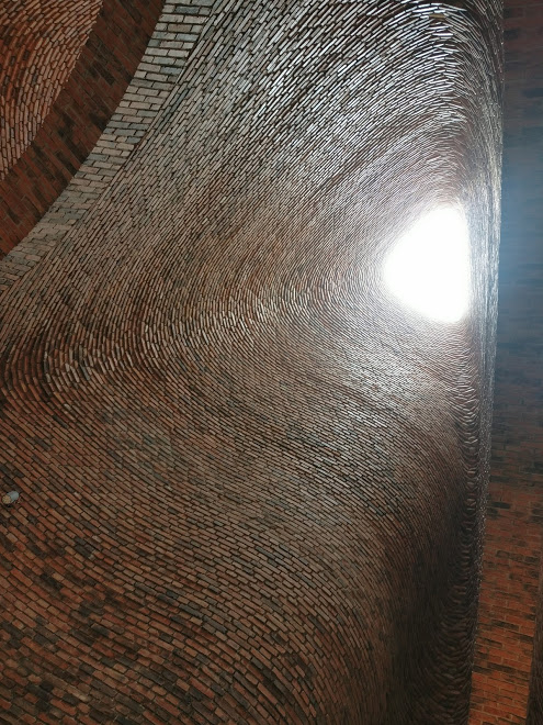 The buildings are situated in what is very much a landscape-in-progress — walkways meander around the lake, grassy slopes invite you for a picnic, row upon row of planters promise blooming hillsides in Spring — while construction work is going on further up the hillsides. There are some windmills at the edge of the lake that serve no function but a quaint backdrop to selfies.