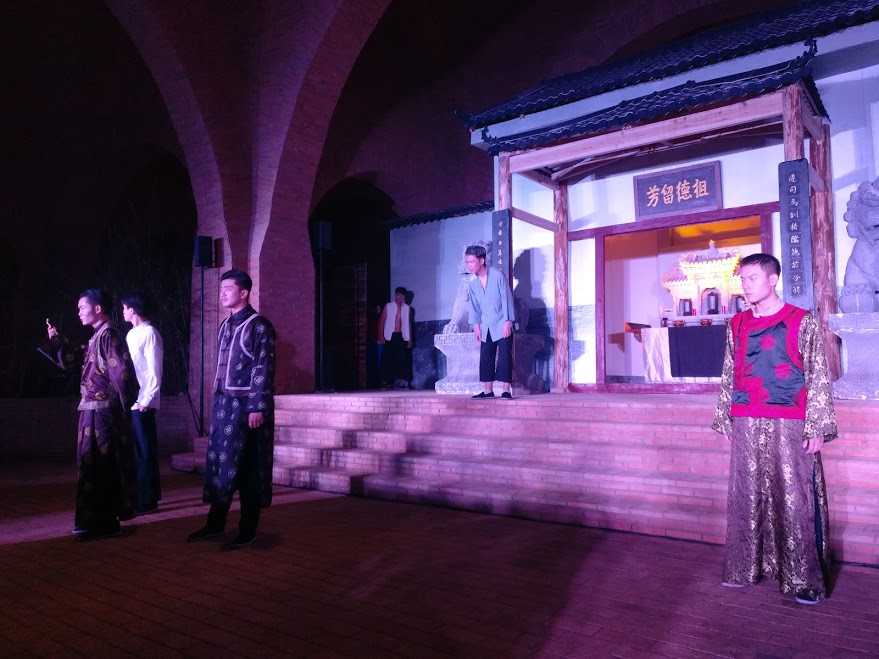 The most iconic building — shaped like a cluster of terracotta bottles — is the venue of a theatre performance.