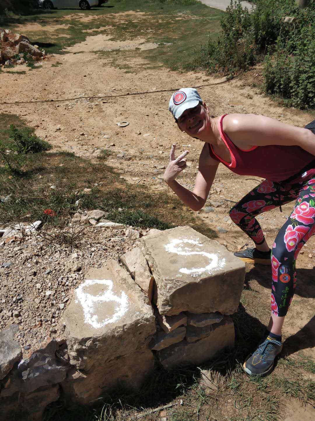 The trail started easy enough, on the railroad tracks next to Mianshan subway station, but it wasn't long before it sent hashers scrambling up a steep trail into the Western Hills.