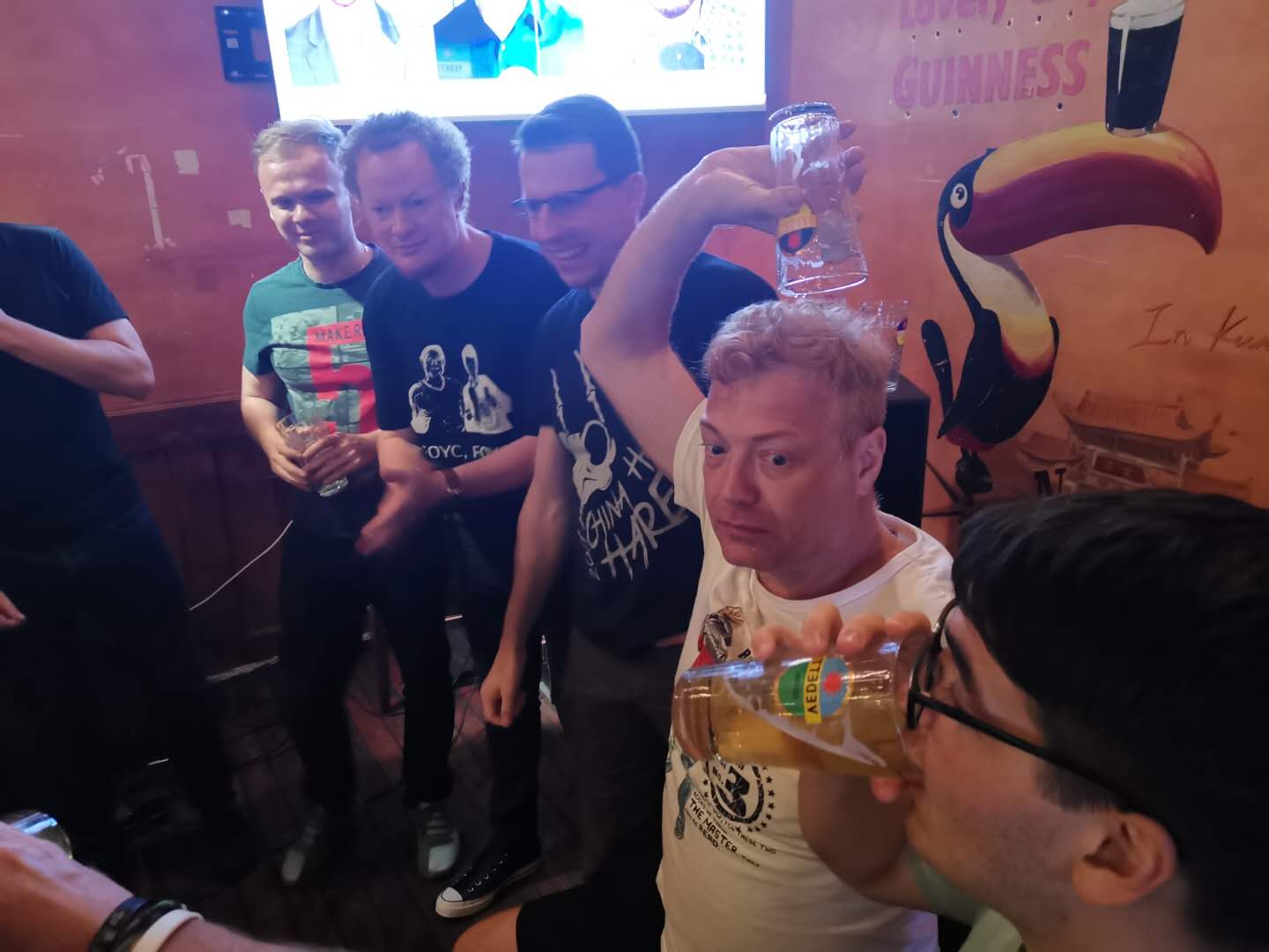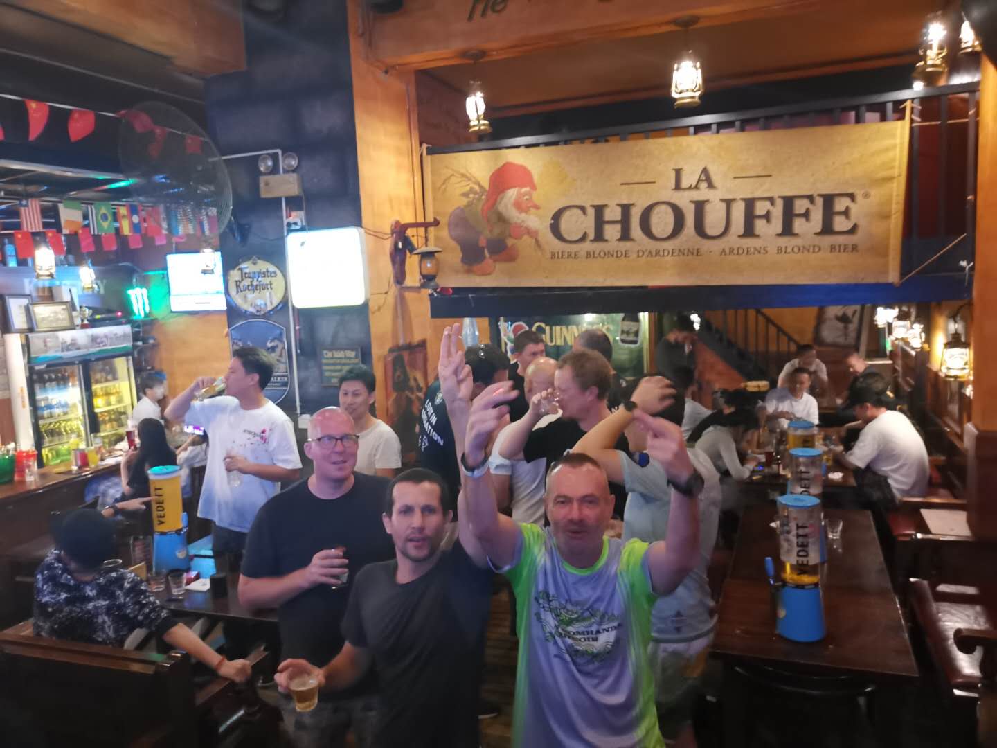 For the real die-hards, there was an after-party at O'Reilly's with another boat race drinking match — this time the Kunming Flying Tigers rugby team brought a crushing defeat down on the hashers present. The day had been quite hot, but during the night a massive thunder- and rain storm broke. The weather gods were with the hashers this weekend.