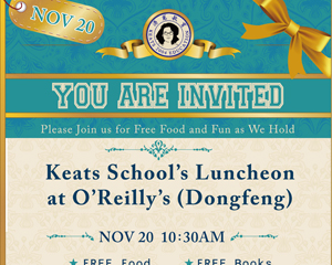 Please join us for FREE food and fun as we hold Keats School’s luncheon at O’Reilly’s (Dongfeng). Come and get some FREE food, FREE books, FREE tuition fee vouchers, and FREE surprising gifts.