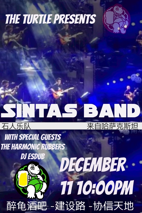 Sintas Band, a Kazak band of merry travelers, will be coming to the turtle for a once in a lifetime chance to get down with some Kazak Folk Punk! Kunming local favorites the Harmonic Rubbers will be opening up the night, and Afro-gypsy DJ Esdub will be spinnin till the sun comes up