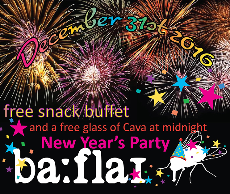 Free Snack Buffet and a free glass of Cava at midnight!