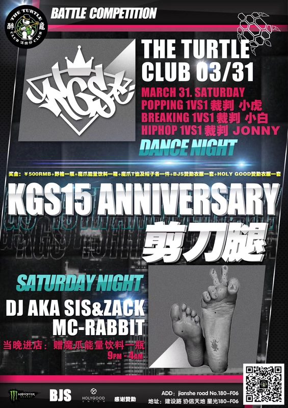 The Turtle Club's monthly dance battle begins this Saturday night with 1500 RMB worth of cash prizes plus sponsor giveaways on the night for the first in our series of 12.
