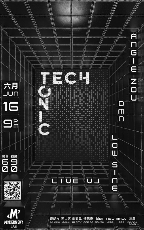 TechTonic is calling for its fifth chapter and a deep dive into the industrial vaults of Kunming’s Modern Sky Lab as an eclectic circle of Kunming artitechts pick up the bassline to signal their sounds into the night. Tune your ears and rewire your cerebral circuits - Party Queen Angie Zou, producer/frequency freak Low Sine and minimal master DMN received the summons for an all-night upgrade of body and brain on June 16! Your new operating spirit will be running on Crystal Cortex’ cubically enhanced nighttime environment, featuring a live VJ set uploaded only for this instance of TechTonic!
