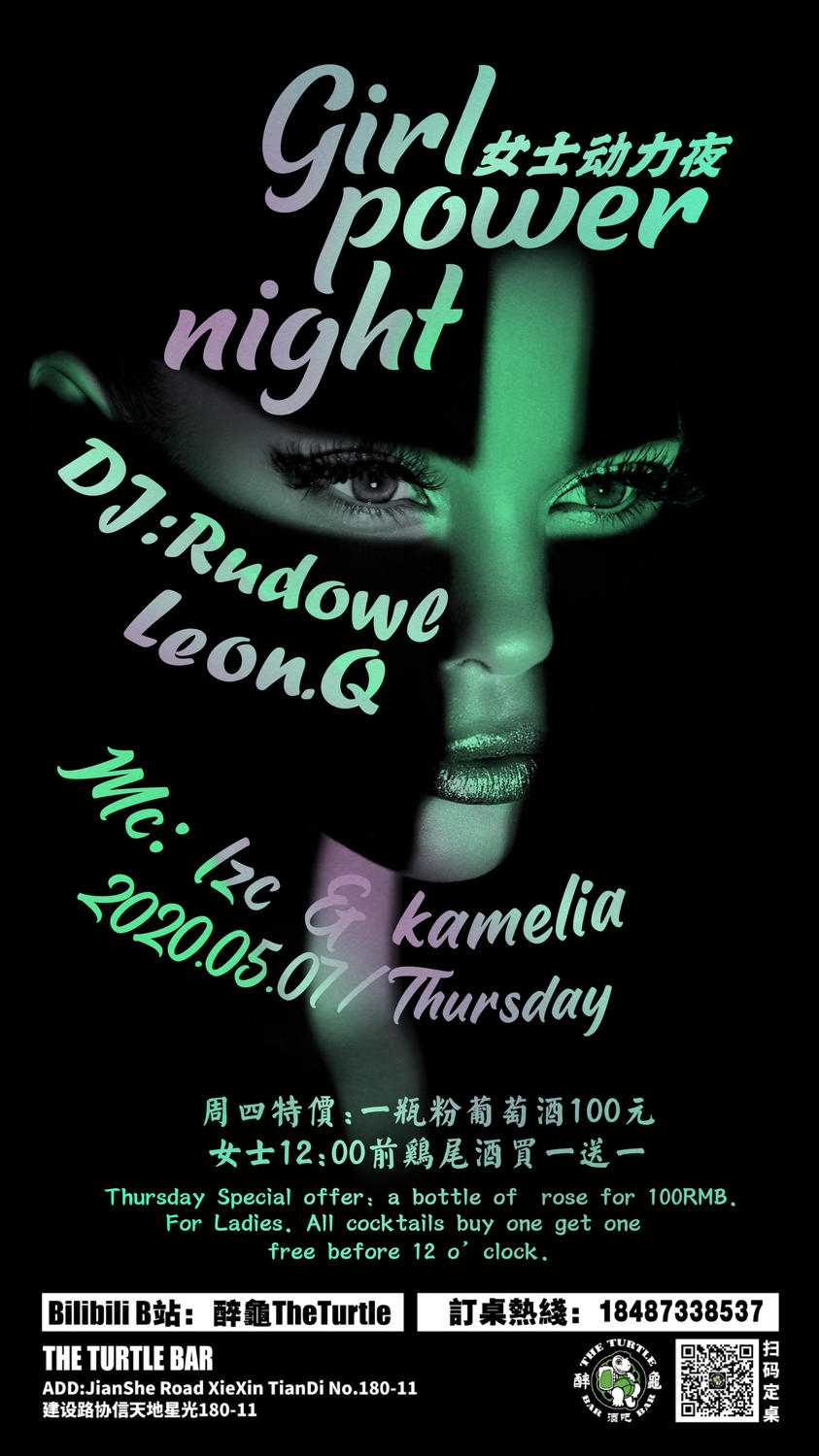 This Thursday night will be Girl Power Night at The Turtle Bar, and will feature DJ Rudowl & Leon.Q, as well as MC Izc & Kamelia...come on out for a fun night on the town with the ladies!
