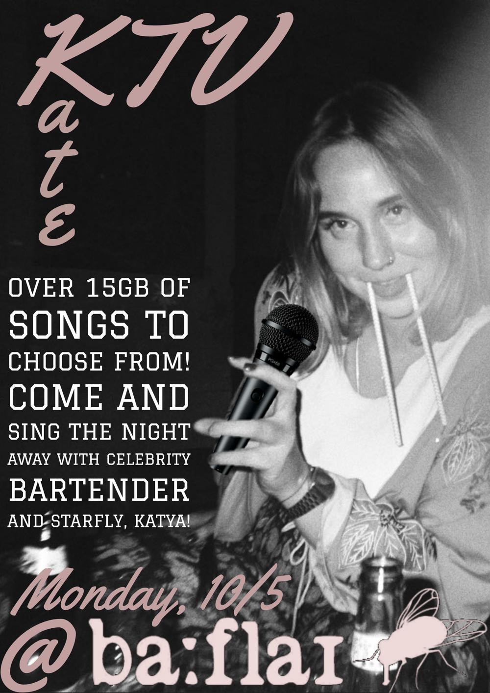 With over 15gb of songs to choose from, you'll surely find your favorites. Come sing the night away with celebrity bartender Katya!