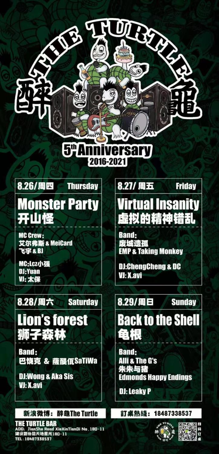 TURTLE BAR FIVE YEAR ANNIVERSARY! This Thursday through Sunday don't miss out on a versatile mix of 10 bands, 14 DJs, and a host of MCs! The Turtle Bar happy bday! See ya this weekend!