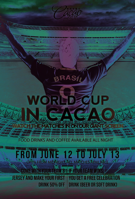 Watch the World Cup on our giant screen! All games available!! Prizes for winning team supporters. Come with your country's jersey and make your first drink half price!