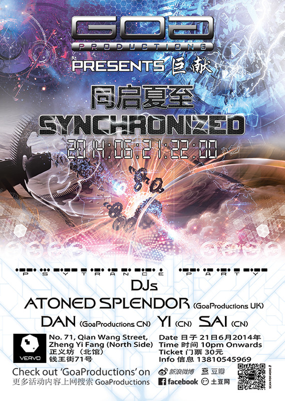 On this year’s summer solstice, Saturday 21st of June, GoaProductions is synchronizing itself across China. We will be holding events simultaneously in Beijing, Shanghai and Kunming.
