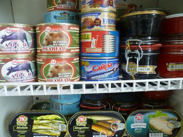 Small store run by a Heilongjiang native selling imported goods from Russia including vodka, Russian beer, cigarettes, caviar, canned bear and moose meat, babushka dolls, leather baseball caps and more