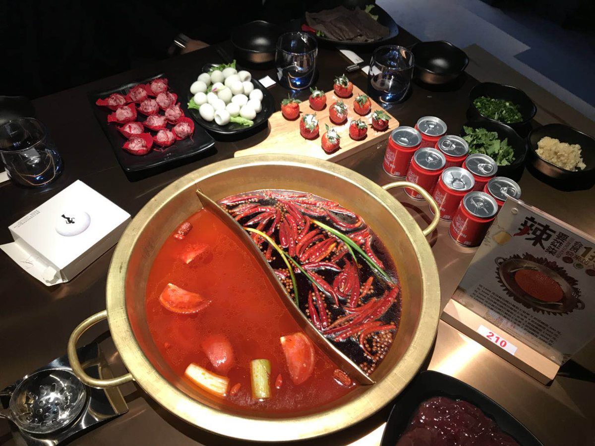 Xiongqi Hot Pot is a famous brand. It combines Sichuan and Chongqing's hot pot characters, spicy and delicious. The branch in Kunming was opened in December 2017. One of the owner is a Chinese famous hoofer, Yang Liping. She integrated art into hot pot. Therefore in this restaurant, you can easily find art elements everywhere.
