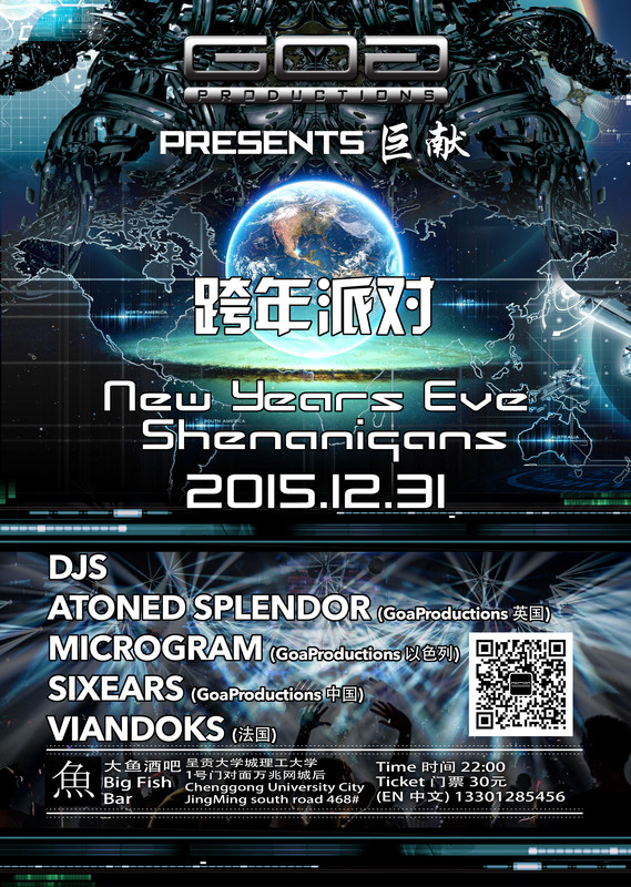 Come and join the GoaProductions crew and bring in the New Year with us at Big Fish bar in Chenggong. Electronic psychedelic sounds shall be set loose from the pounding sound system to swill and twirl the dance floor into a mass of smiling faces and stomping feet!