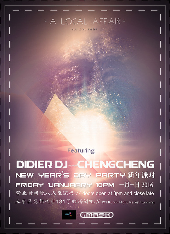 DJ Didier returns to Kunming after a successful stint as resident DJ at infamous Chengdu club, Jellyfish. Utilising CDJs, a drum machine and live instruments to create his bass heavy underground sound, we're chuffed he's opening for us on the first day of the new year.