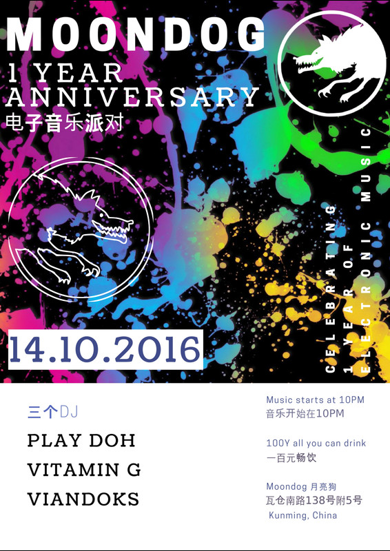 Friday, Moondog will be celebrating 1 year of DJing and electronic music, with three of it's most notorious artists: Viandoks, Vitamin G & Play Doh. The bar will also be running its signature "100RMB All You Can Drink", so you better get your asses down there to enjoy friends, drinks and good music !