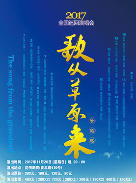 26 November Sun Culture 8:00pm • 80 yuan The Song of the Grassland Description 《歌从草原来》Mongolian folk songsTickets Location Kunming Theater 410 Qingnian Lu (0871) 63169950 Share FACEBOOK REDDIT LINKED_IN Twitter SINA_WEIBO WeChat Who's Going Be the first. I'm going qr Scan the QR Code with WeChat and share on your Moments. Users Added by Philou, November 23, 2017 Last updated by Philou, November 23, 2017
