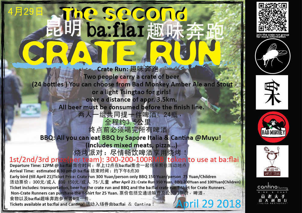 Crate run ticket includes transportation from barfly and back, crate run T-shirt, half a crate of beer, Pretzels and the BBQ!)