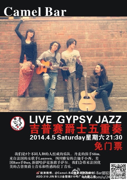 Saer and his latest band are coming down from Lijiang this weekend. Slim on drums, Dan on bass, Singer Laureen from France and Xiao Xi on guitar.