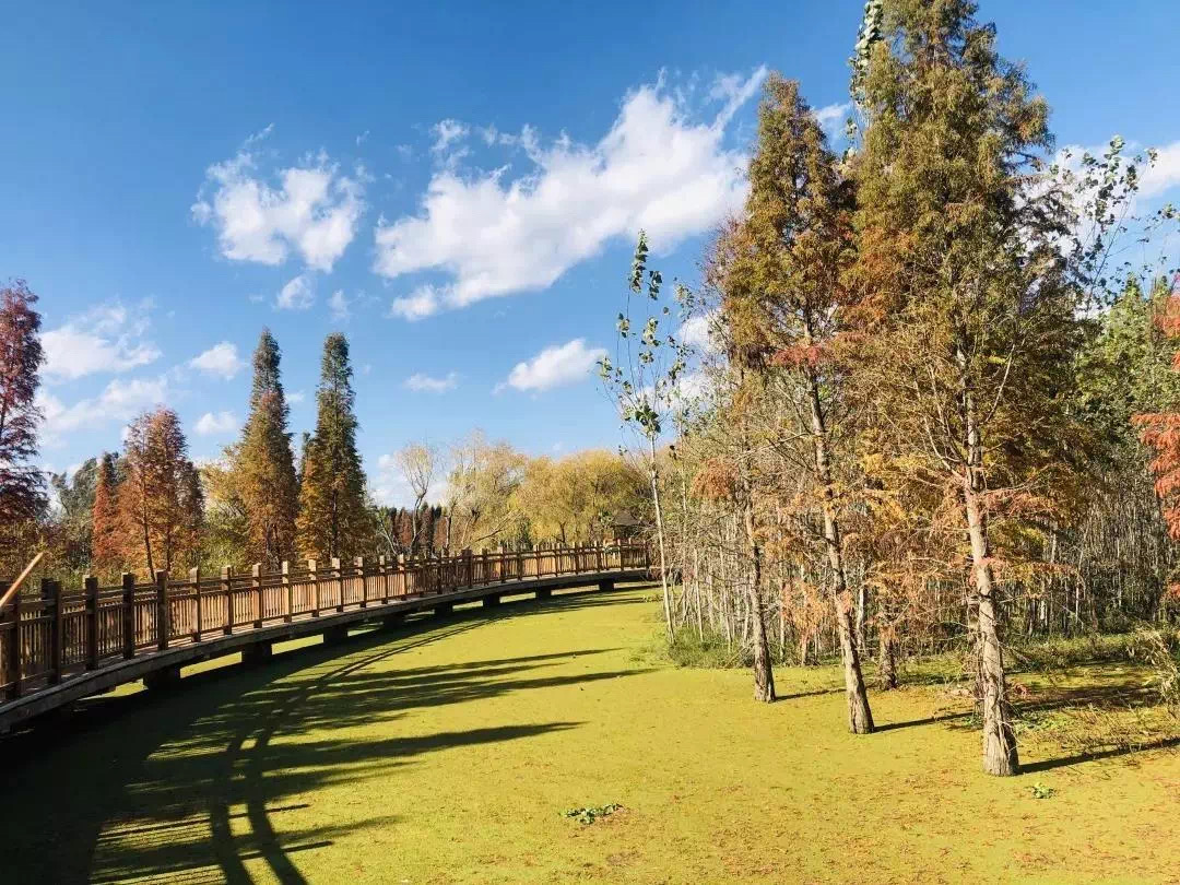 The natural park built with Haihong wetland as the core is very large and green. The vegetation is lush, the environment is beautiful, and there are a large number of Metasequoias. There is also a boat rental service in the park, so you can get in touch with the wetland. You can also set up a tent inside. The night view is also very beautiful. It is a great place for family outings and gatherings of friends.
