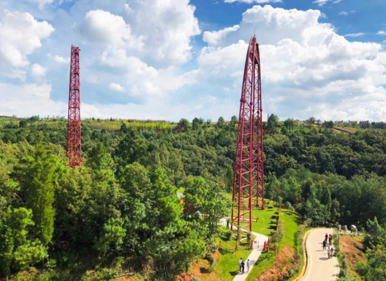 The environment in the park is good, the area is relatively large, and battery cars are also provided. The park has a high degree of greening, with green mountains and green waters, tiered forests, and fresh air. Activities include bungee jumping, slides, hang gliding, jungle crossing, go-karting, etc.