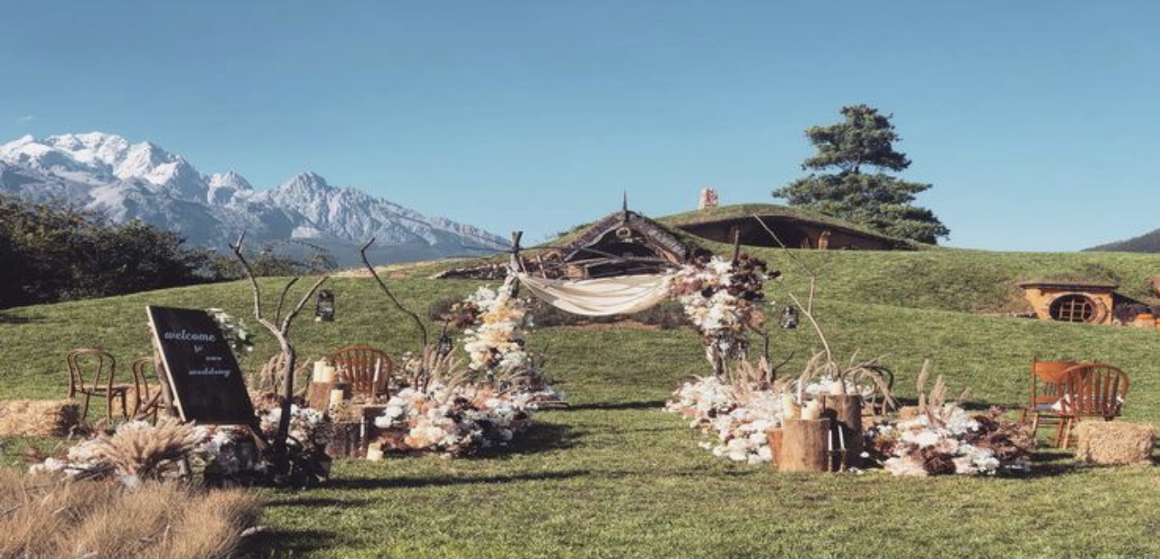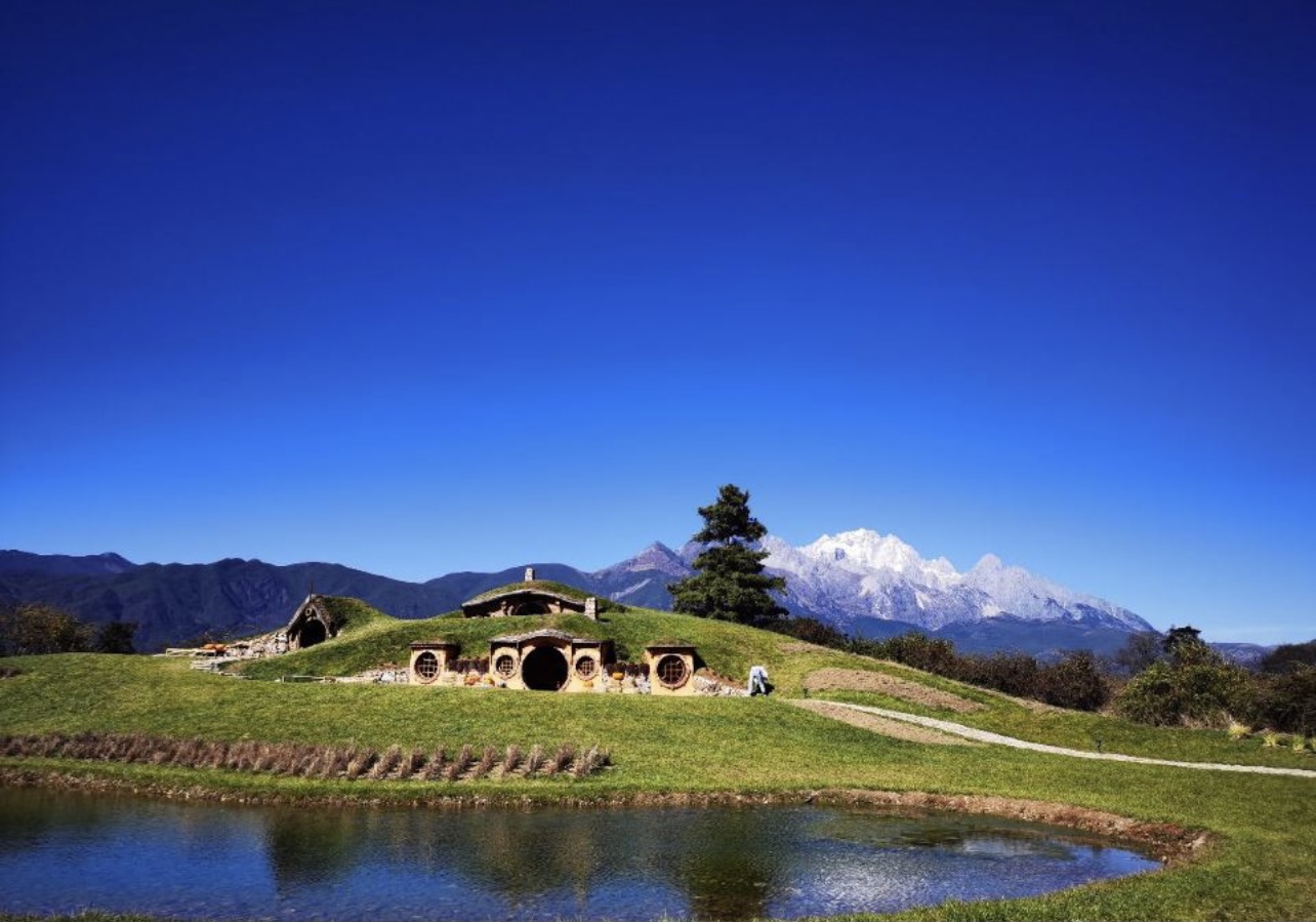 Tinghua valley mimics The Shire, home to Tolkien's Hobbits, next to Baisha in the Lijiang area. The valley lies at the foot of Jade Dragon Snow Mountain and is mostly a park created for photography sessions.
